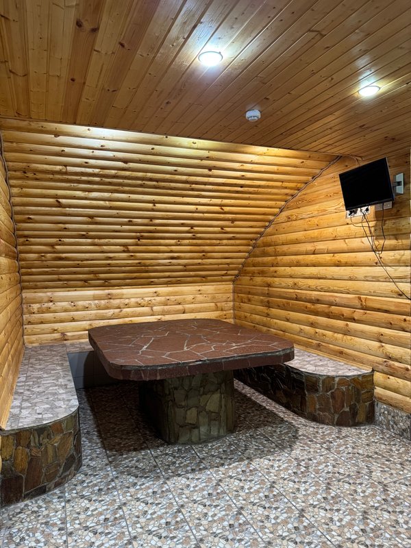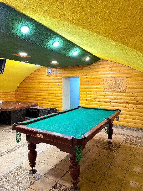 Не хочется в бассейн? Не проблема! Вместо этого можно провести время в нашей комнате отдыха. Мы постарались создать здесь комфортный, стильный интерьер из максимально натуральных, экологичных материалов, выбрать мебель, которая будет одновременно удобной и красивой. Надеемся, что вам понравится! Для создания настроения у нас есть бильярд. Мы не располагаем собственной кухней, но не возражаем, если вы принесете еду с собой и совместите баню с импровизированным застольем. Только не забывайте, что плотная трапеза непосредственно перед посещением парной - это не самая хорошая идея, согласно мнению врачей. А вот после парной - совсем другое дело!